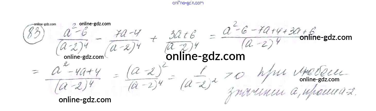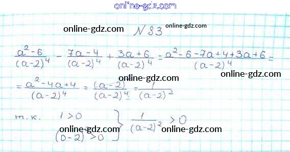 Готовые домашние задания по Алгебре за 8 класс Учебник Мерзляк, Полонский Алгоритм успеха 2016 - §3. Сложение и вычитание рациональных дробей с одинаковыми знаменателями Глава 1. Рациональные выражения 83