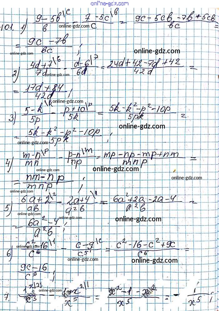 Готовые домашние задания по Алгебре за 8 класс Учебник Мерзляк, Полонский Алгоритм успеха 2016 - §4. Сложение и вычитание рациональных дробей с разными знаменателями Глава 1. Рациональные выражения 101