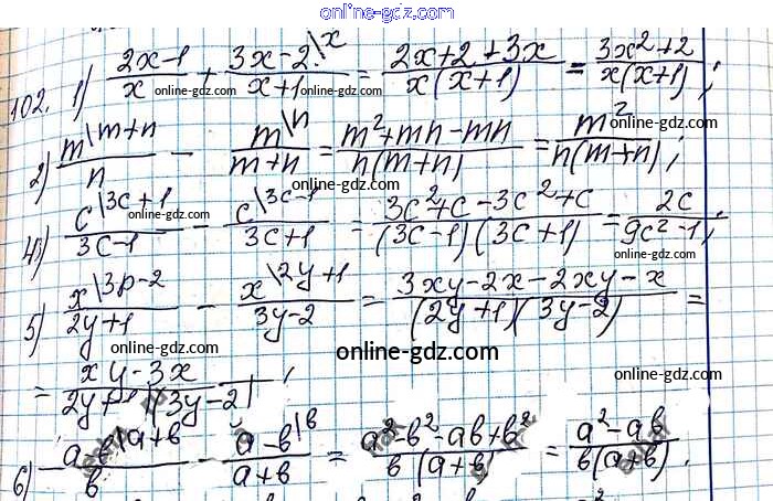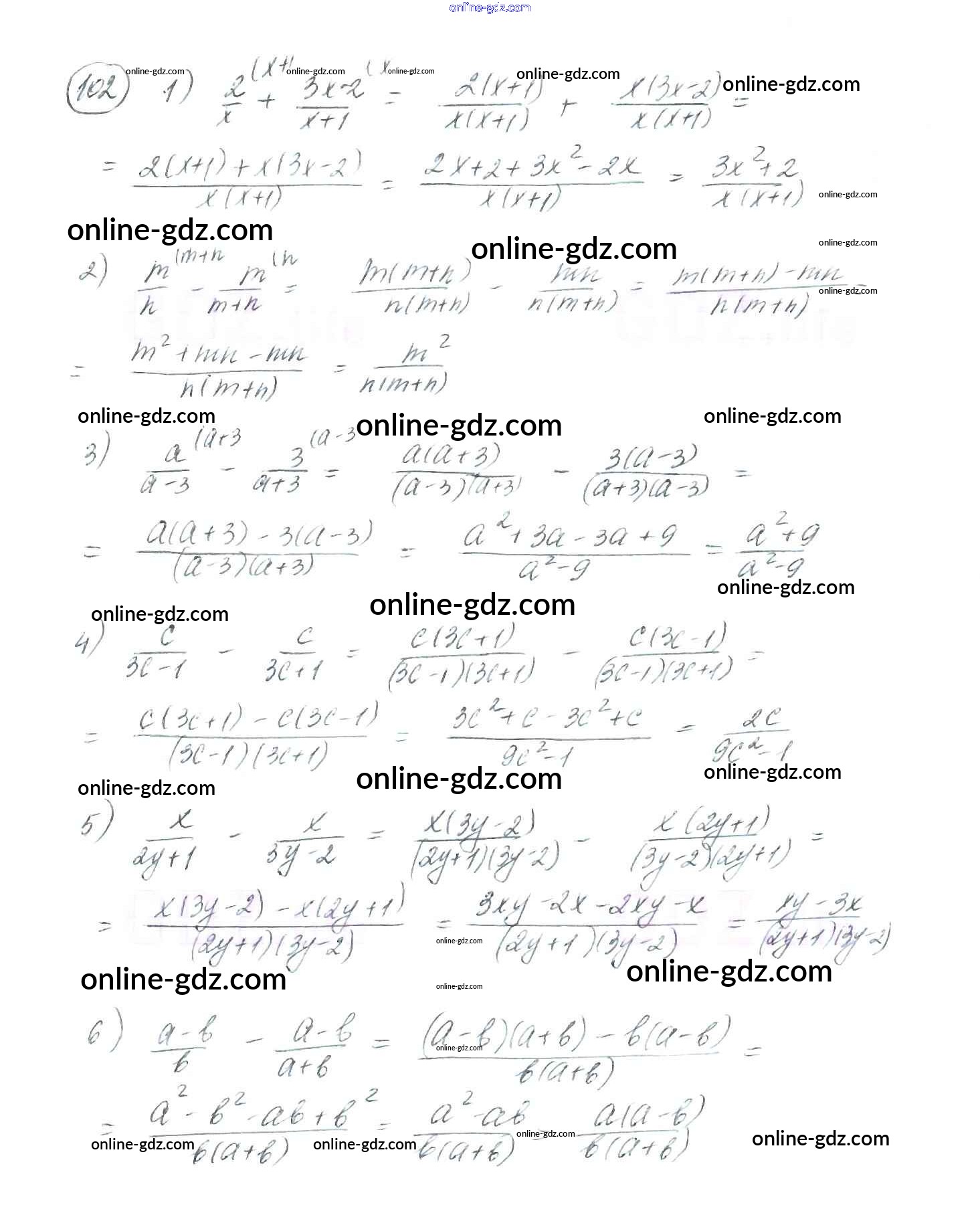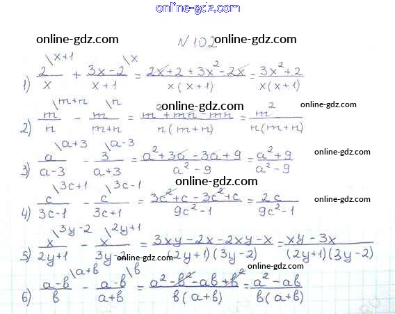 Готовые домашние задания по Алгебре за 8 класс Учебник Мерзляк, Полонский Алгоритм успеха 2016 - §4. Сложение и вычитание рациональных дробей с разными знаменателями Глава 1. Рациональные выражения 102