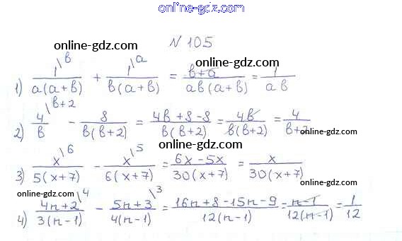 Готовые домашние задания по Алгебре за 8 класс Учебник Мерзляк, Полонский Алгоритм успеха 2016 - §4. Сложение и вычитание рациональных дробей с разными знаменателями Глава 1. Рациональные выражения 105