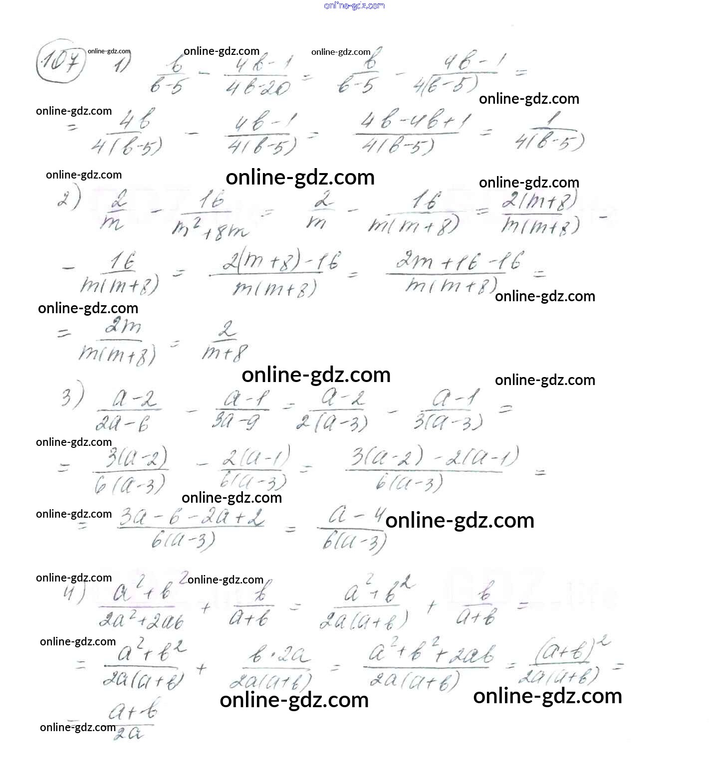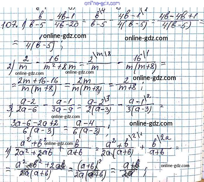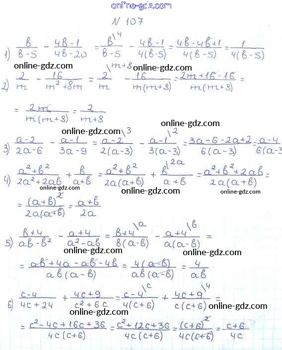 Готовые домашние задания по Алгебре за 8 класс Учебник Мерзляк, Полонский Алгоритм успеха 2016 - §4. Сложение и вычитание рациональных дробей с разными знаменателями Глава 1. Рациональные выражения 107