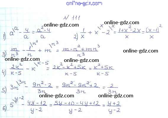 Готовые домашние задания по Алгебре за 8 класс Учебник Мерзляк, Полонский Алгоритм успеха 2016 - §4. Сложение и вычитание рациональных дробей с разными знаменателями Глава 1. Рациональные выражения 111