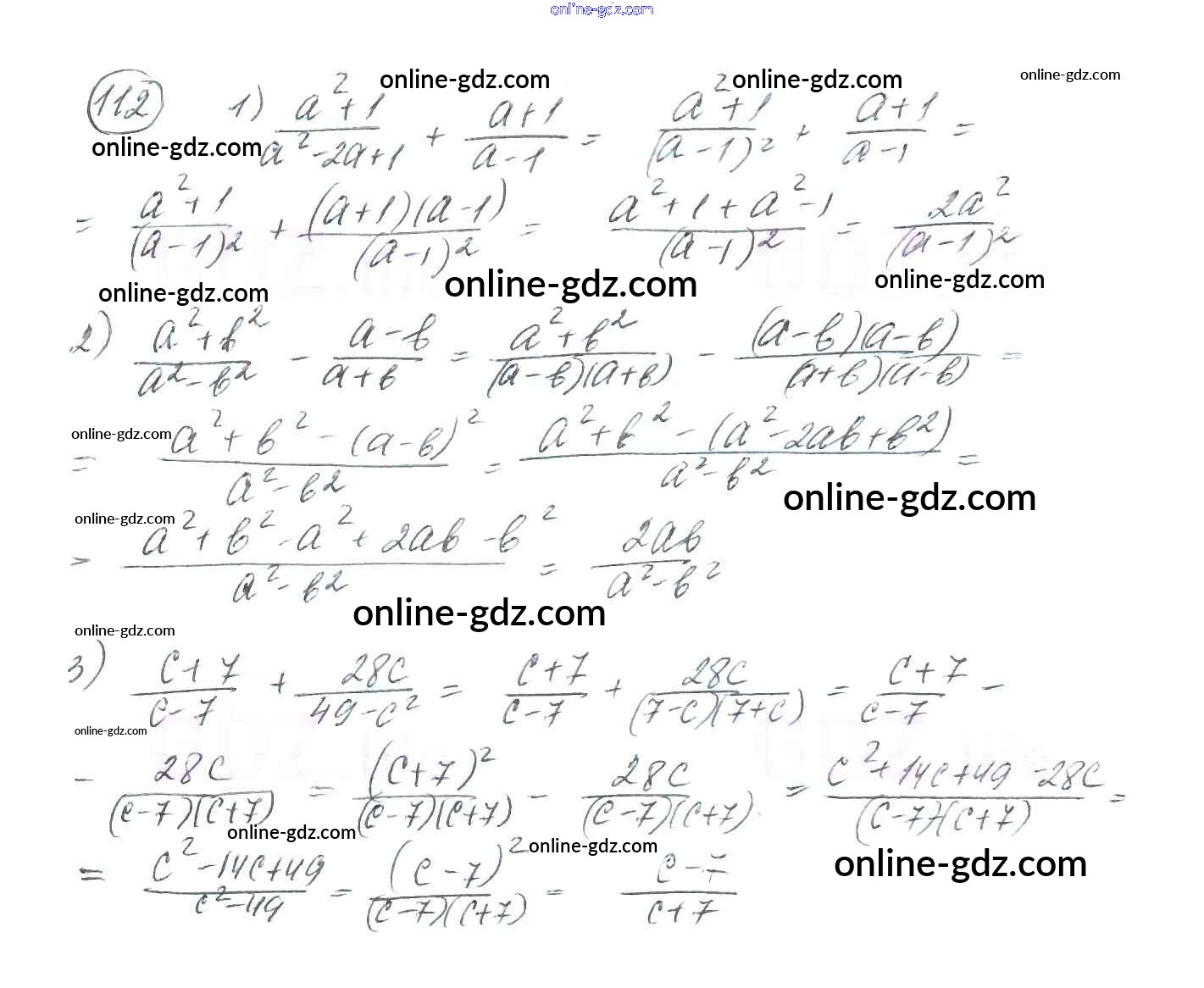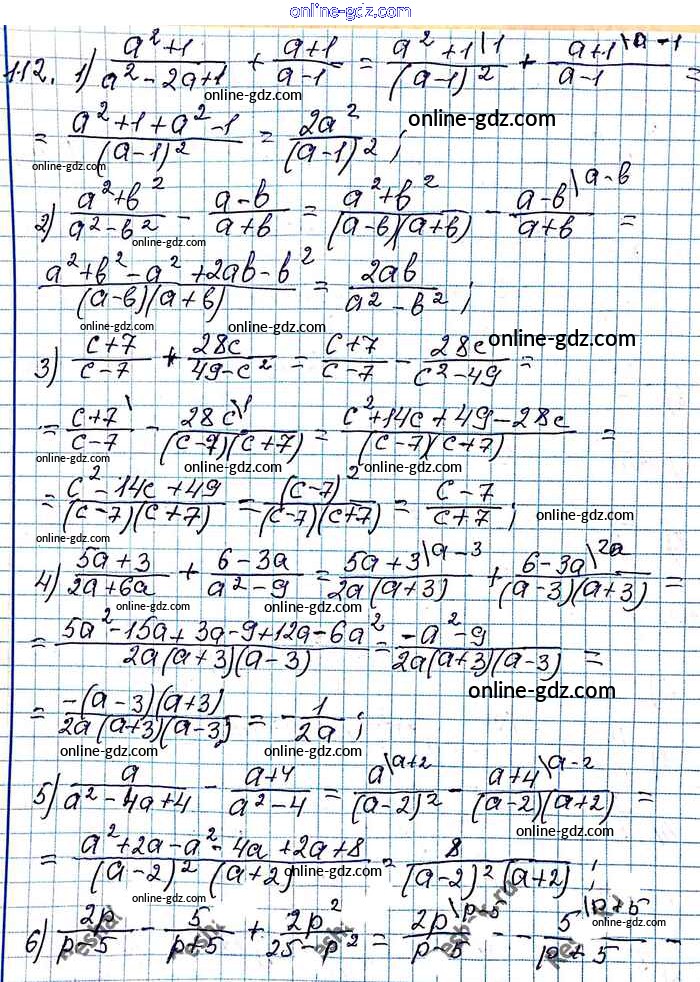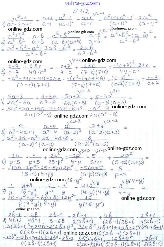Готовые домашние задания по Алгебре за 8 класс Учебник Мерзляк, Полонский Алгоритм успеха 2016 - §4. Сложение и вычитание рациональных дробей с разными знаменателями Глава 1. Рациональные выражения 112
