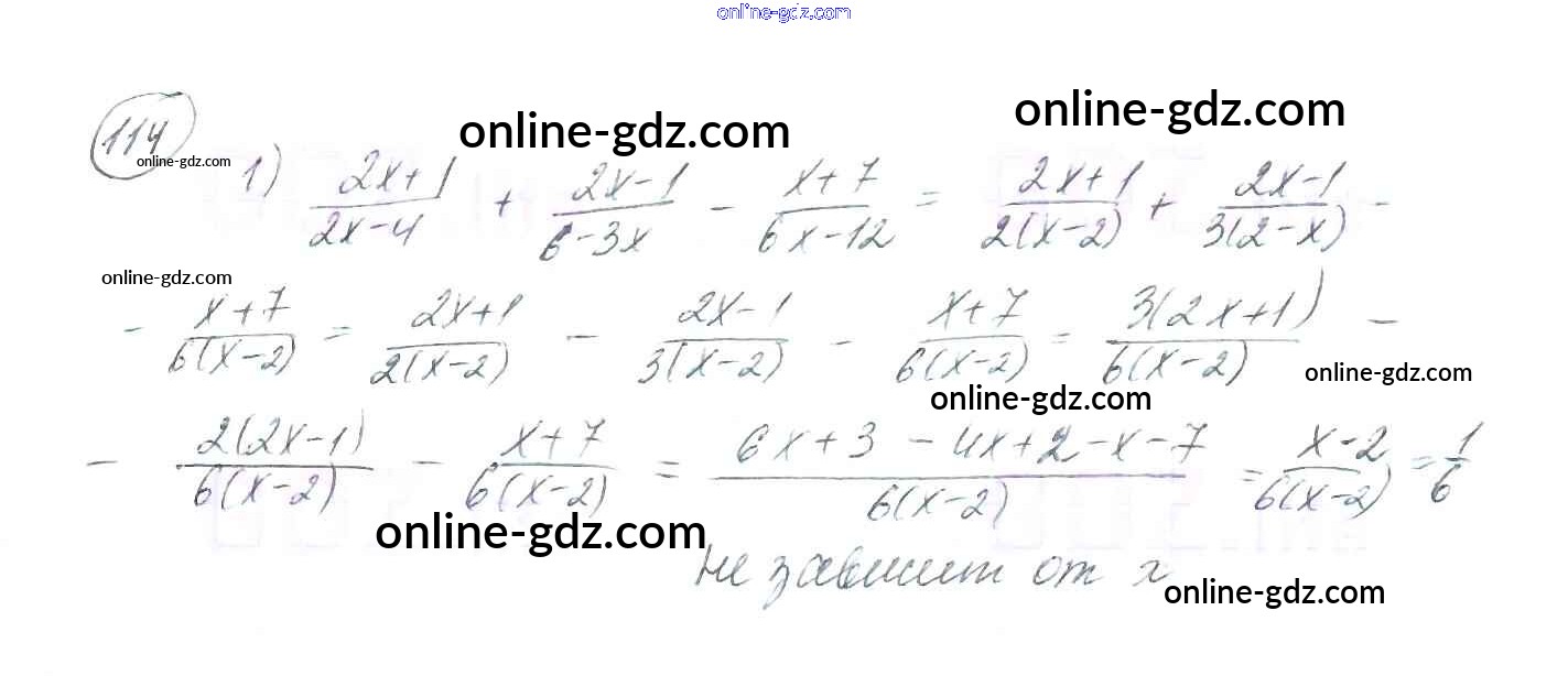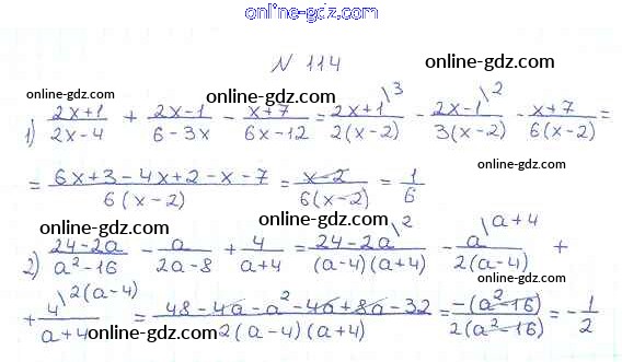Готовые домашние задания по Алгебре за 8 класс Учебник Мерзляк, Полонский Алгоритм успеха 2016 - §4. Сложение и вычитание рациональных дробей с разными знаменателями Глава 1. Рациональные выражения 114
