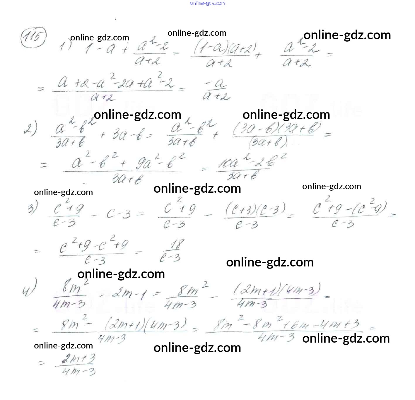 Готовые домашние задания по Алгебре за 8 класс Учебник Мерзляк, Полонский Алгоритм успеха 2016 - §4. Сложение и вычитание рациональных дробей с разными знаменателями Глава 1. Рациональные выражения 115