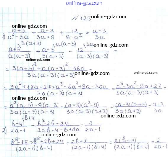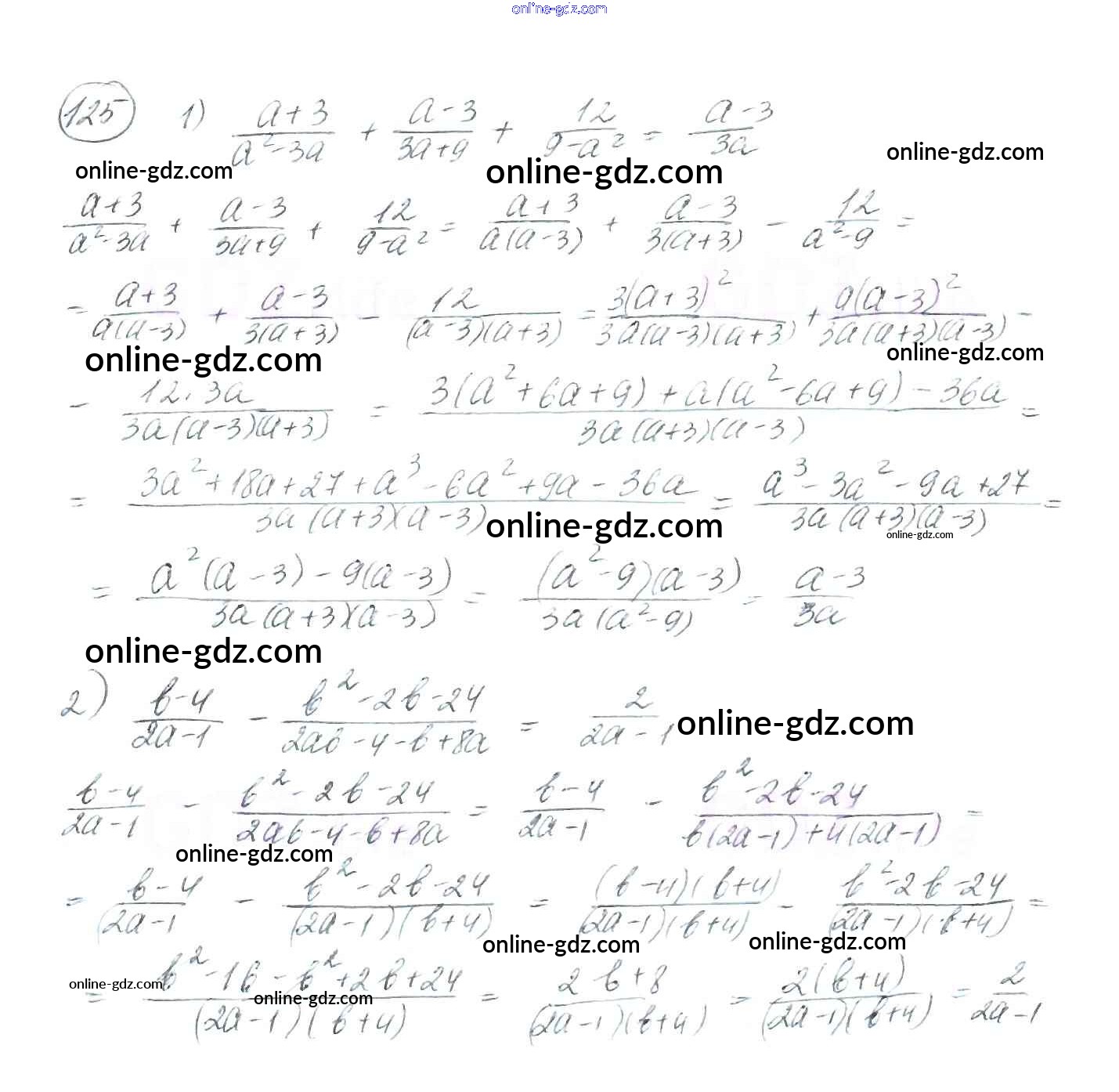 Готовые домашние задания по Алгебре за 8 класс Учебник Мерзляк, Полонский Алгоритм успеха 2016 - §4. Сложение и вычитание рациональных дробей с разными знаменателями Глава 1. Рациональные выражения 125