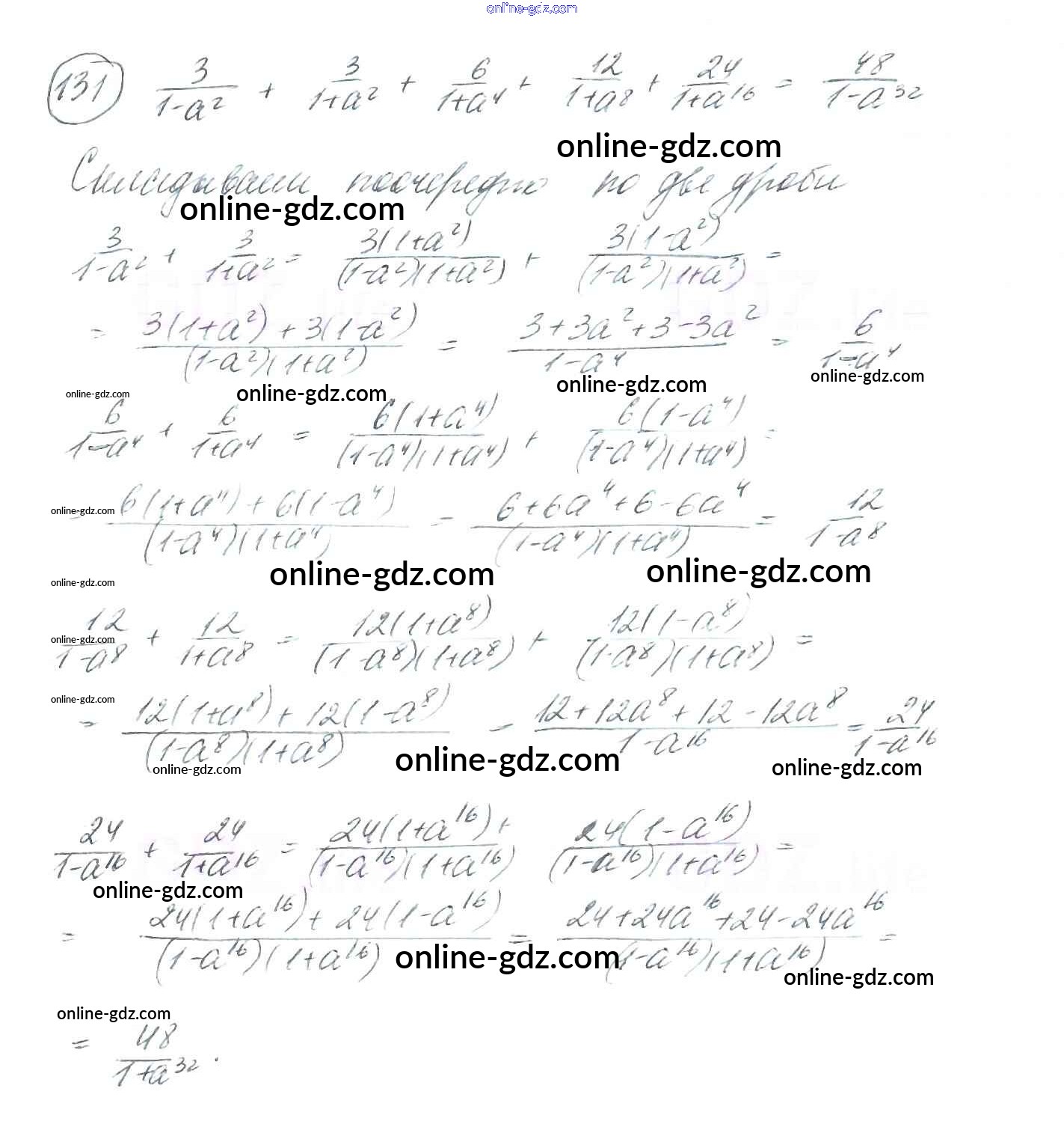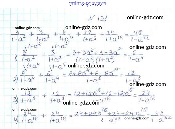 Готовые домашние задания по Алгебре за 8 класс Учебник Мерзляк, Полонский Алгоритм успеха 2016 - §4. Сложение и вычитание рациональных дробей с разными знаменателями Глава 1. Рациональные выражения 131