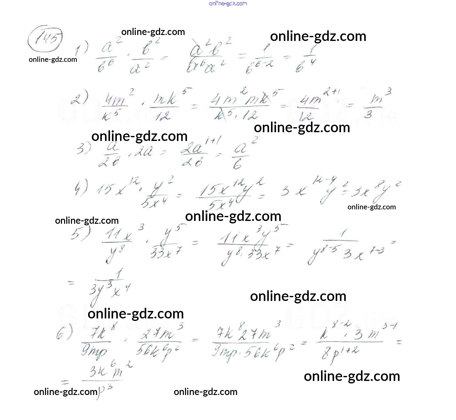 Готовые домашние задания по Алгебре за 8 класс Учебник Мерзляк, Полонский Алгоритм успеха 2016 - §5. Умножение и деление рациональных дробей. Возведение рациональной дроби в степень Глава 1. Рациональные выражения 145