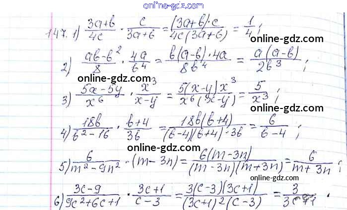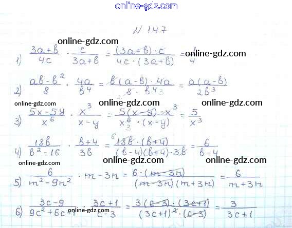 Готовые домашние задания по Алгебре за 8 класс Учебник Мерзляк, Полонский Алгоритм успеха 2016 - §5. Умножение и деление рациональных дробей. Возведение рациональной дроби в степень Глава 1. Рациональные выражения 147