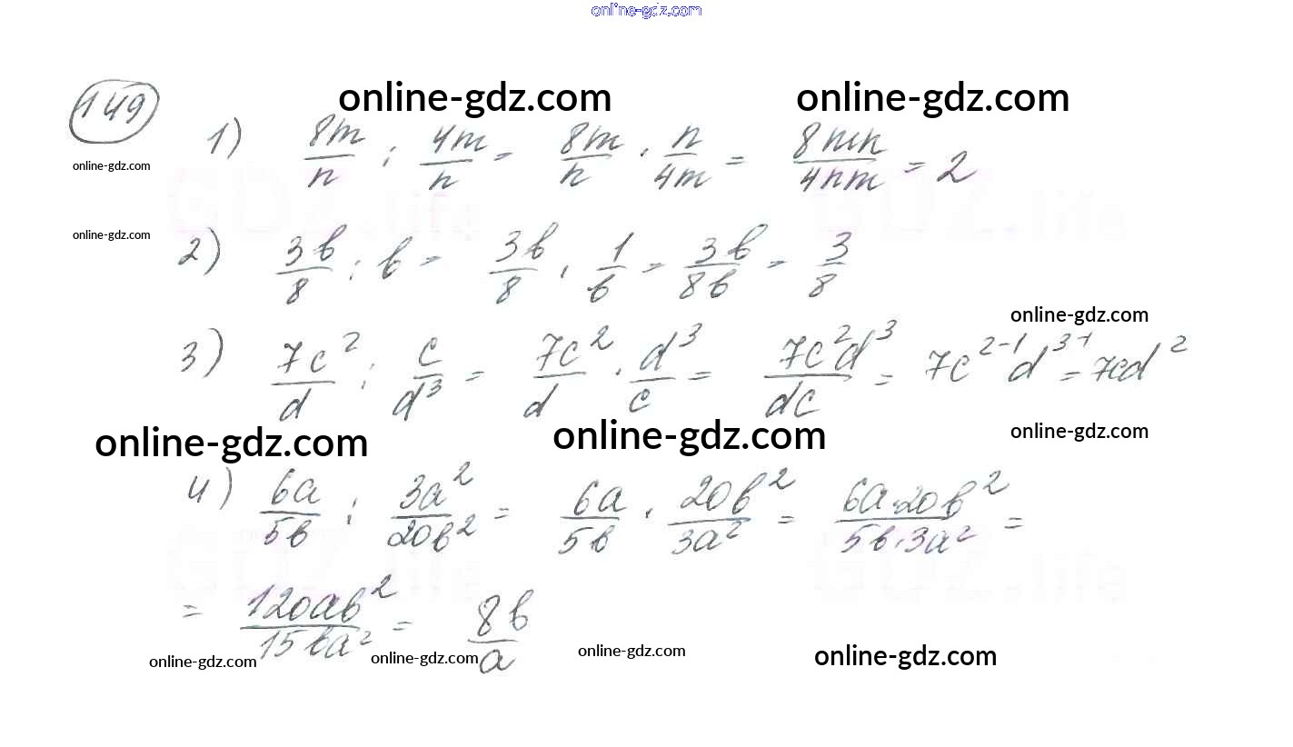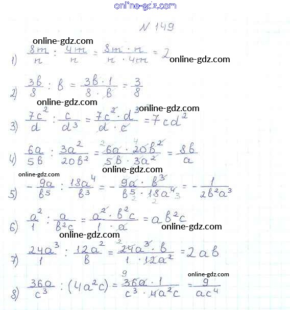 Готовые домашние задания по Алгебре за 8 класс Учебник Мерзляк, Полонский Алгоритм успеха 2016 - §5. Умножение и деление рациональных дробей. Возведение рациональной дроби в степень Глава 1. Рациональные выражения 149