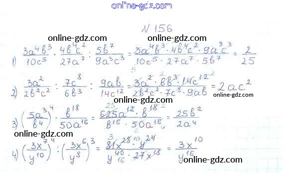 Готовые домашние задания по Алгебре за 8 класс Учебник Мерзляк, Полонский Алгоритм успеха 2016 - §5. Умножение и деление рациональных дробей. Возведение рациональной дроби в степень Глава 1. Рациональные выражения 156