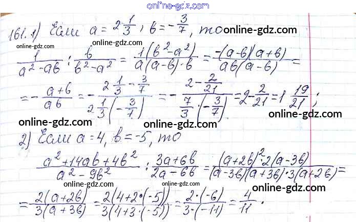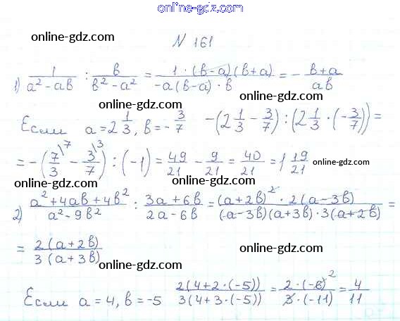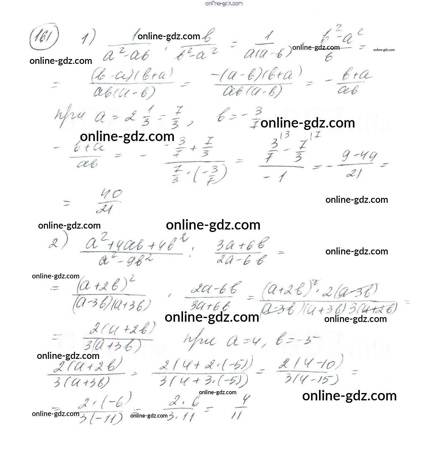Готовые домашние задания по Алгебре за 8 класс Учебник Мерзляк, Полонский Алгоритм успеха 2016 - §5. Умножение и деление рациональных дробей. Возведение рациональной дроби в степень Глава 1. Рациональные выражения 161