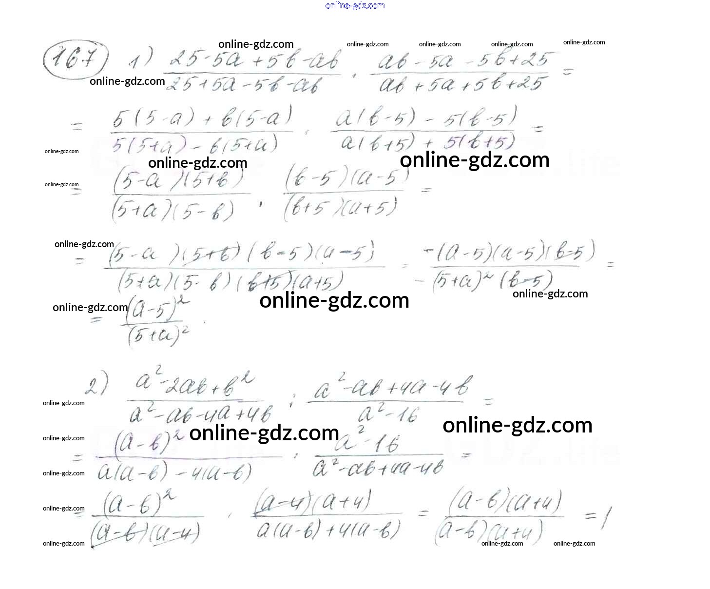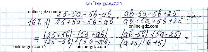 Готовые домашние задания по Алгебре за 8 класс Учебник Мерзляк, Полонский Алгоритм успеха 2016 - §5. Умножение и деление рациональных дробей. Возведение рациональной дроби в степень Глава 1. Рациональные выражения 167