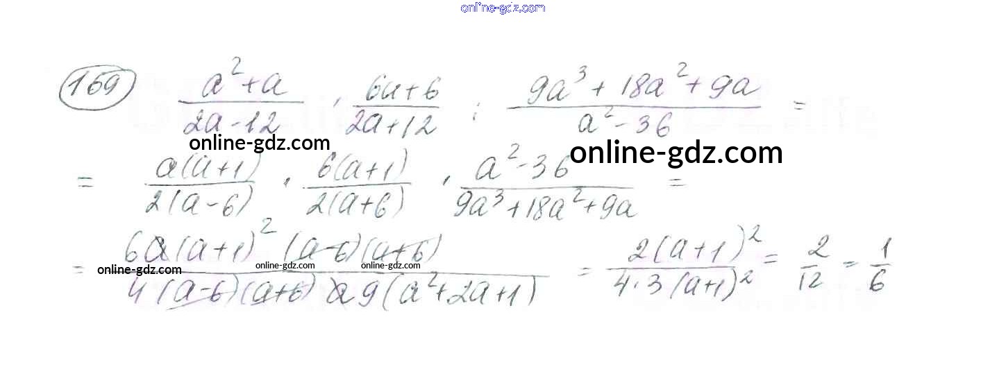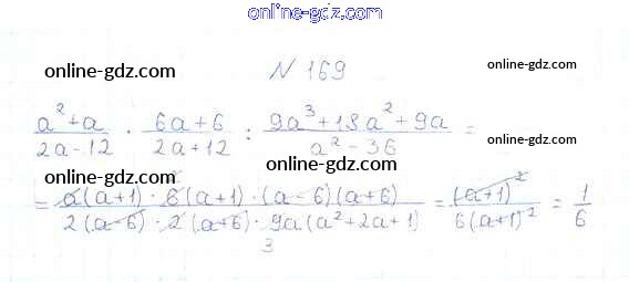 Готовые домашние задания по Алгебре за 8 класс Учебник Мерзляк, Полонский Алгоритм успеха 2016 - §5. Умножение и деление рациональных дробей. Возведение рациональной дроби в степень Глава 1. Рациональные выражения 169