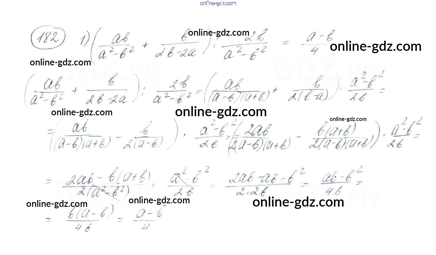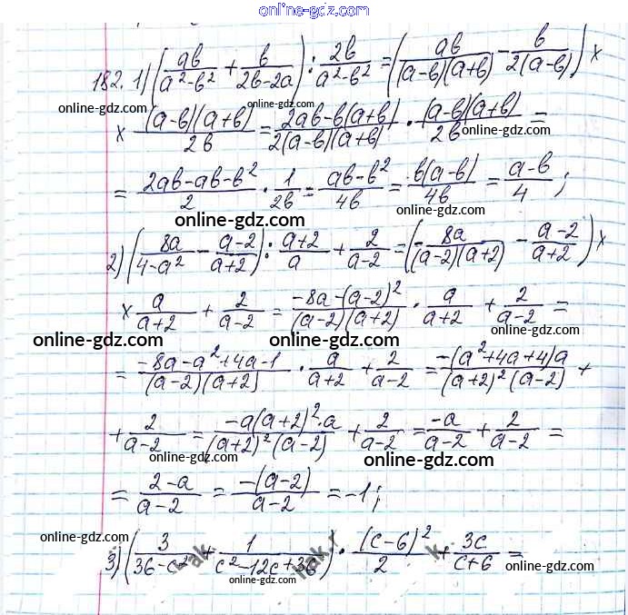 Готовые домашние задания по Алгебре за 8 класс Учебник Мерзляк, Полонский Алгоритм успеха 2016 - §6. Тождественные преобразования рациональных выражений Глава 1. Рациональные выражения 182