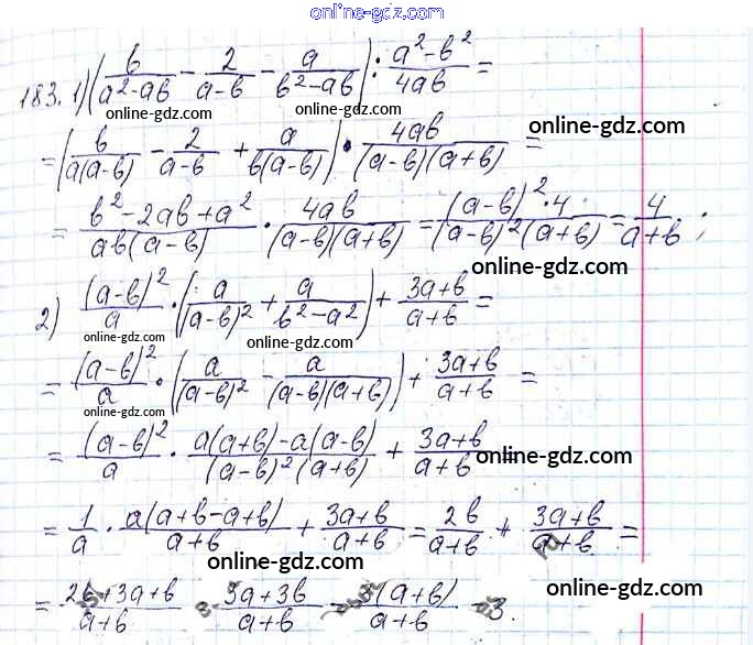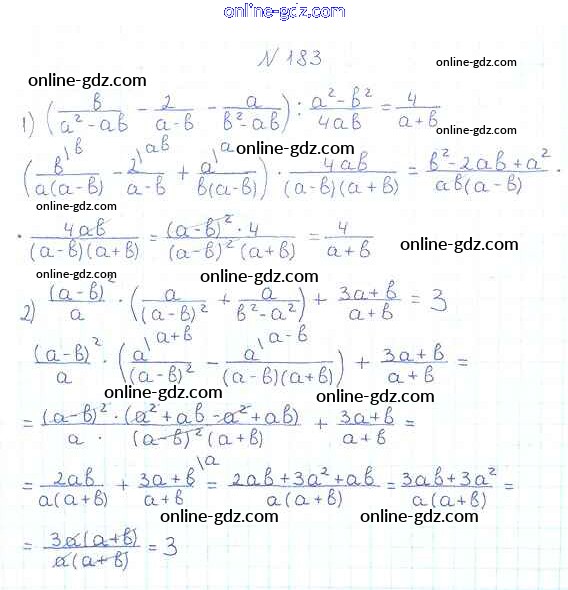 Готовые домашние задания по Алгебре за 8 класс Учебник Мерзляк, Полонский Алгоритм успеха 2016 - §6. Тождественные преобразования рациональных выражений Глава 1. Рациональные выражения 183
