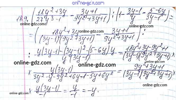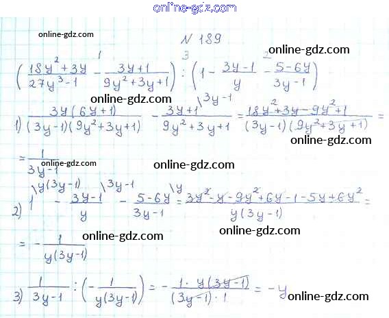 Готовые домашние задания по Алгебре за 8 класс Учебник Мерзляк, Полонский Алгоритм успеха 2016 - §6. Тождественные преобразования рациональных выражений Глава 1. Рациональные выражения 189