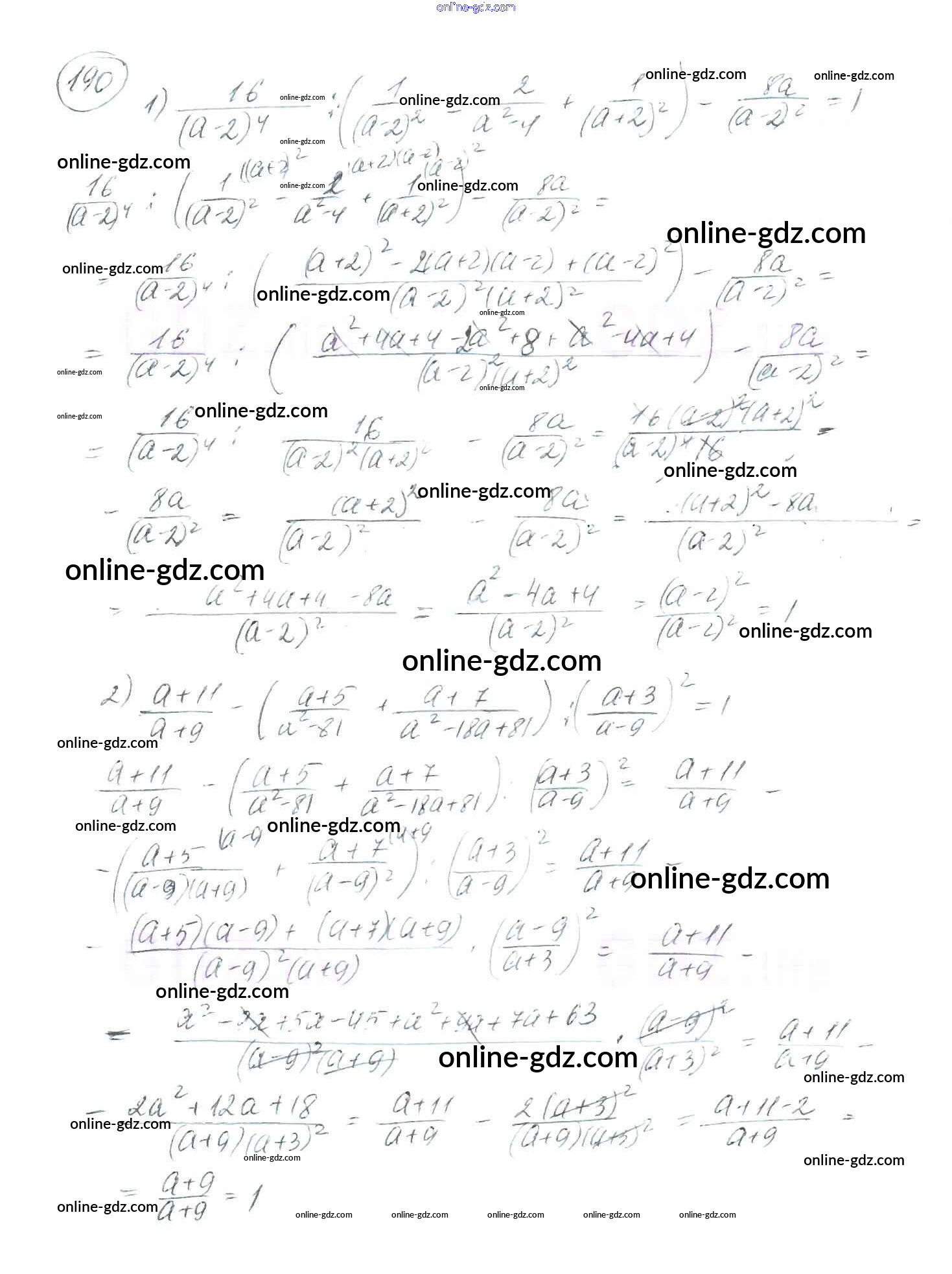 Готовые домашние задания по Алгебре за 8 класс Учебник Мерзляк, Полонский Алгоритм успеха 2016 - §6. Тождественные преобразования рациональных выражений Глава 1. Рациональные выражения 190