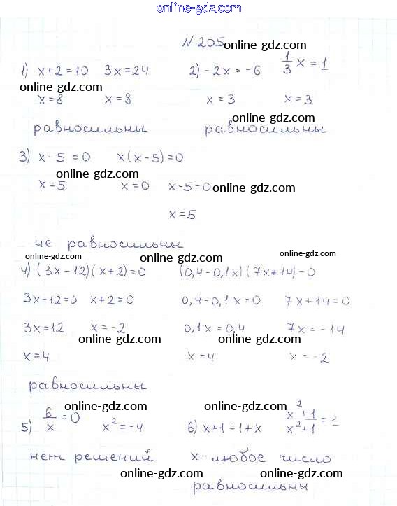 Готовые домашние задания по Алгебре за 8 класс Учебник Мерзляк, Полонский Алгоритм успеха 2016 - §7. Равносильные уравнения. Рациональные уравнения Глава 1. Рациональные выражения 205