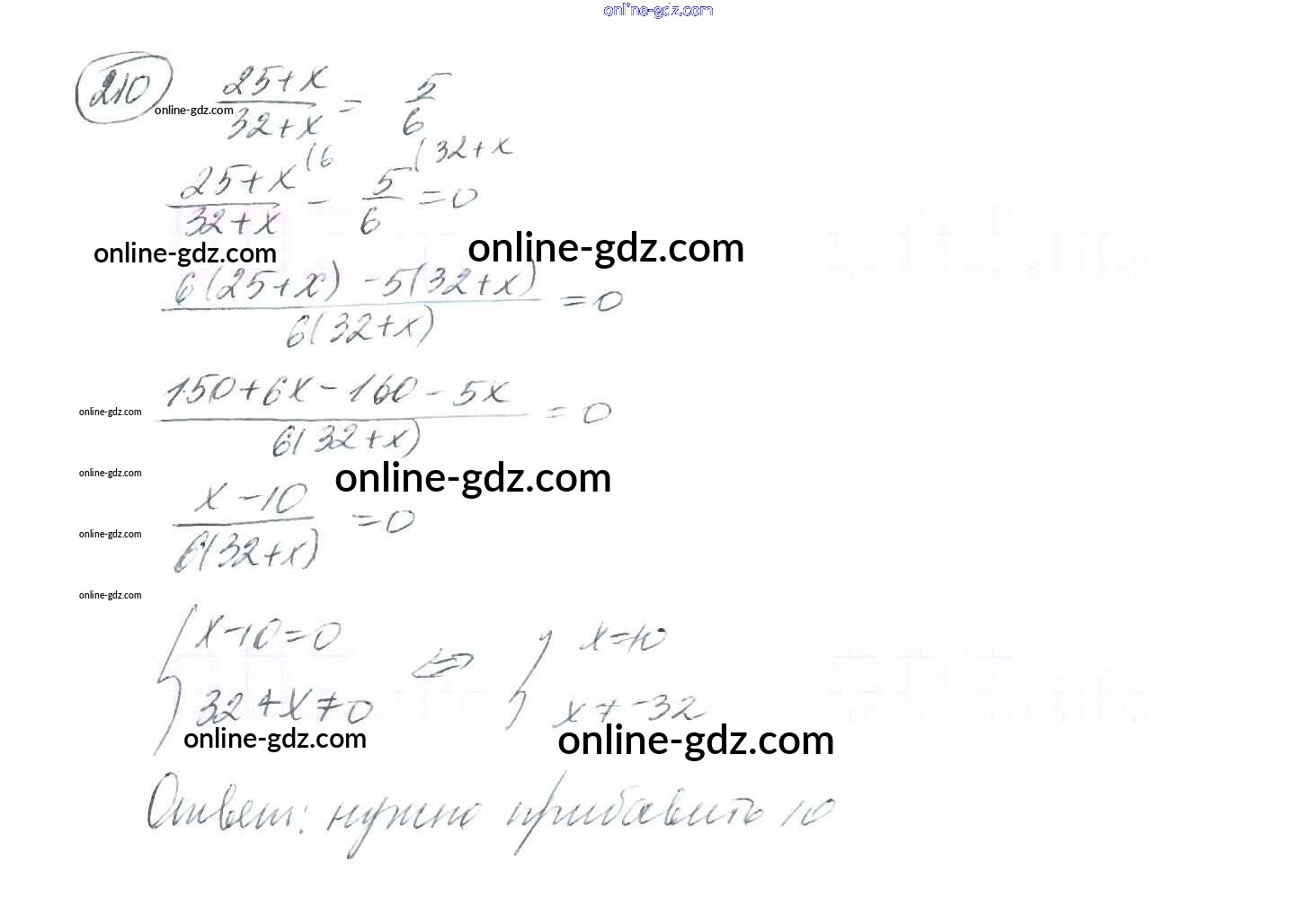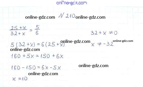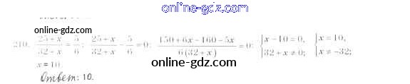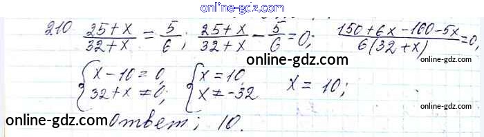 Готовые домашние задания по Алгебре за 8 класс Учебник Мерзляк, Полонский Алгоритм успеха 2016 - §7. Равносильные уравнения. Рациональные уравнения Глава 1. Рациональные выражения 210
