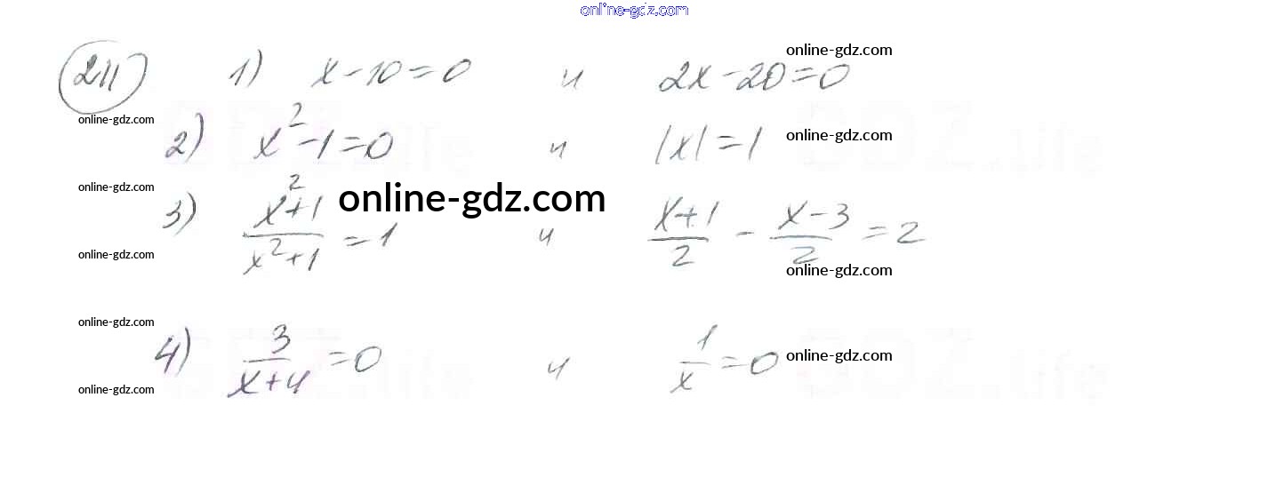 Готовые домашние задания по Алгебре за 8 класс Учебник Мерзляк, Полонский Алгоритм успеха 2016 - §7. Равносильные уравнения. Рациональные уравнения Глава 1. Рациональные выражения 211