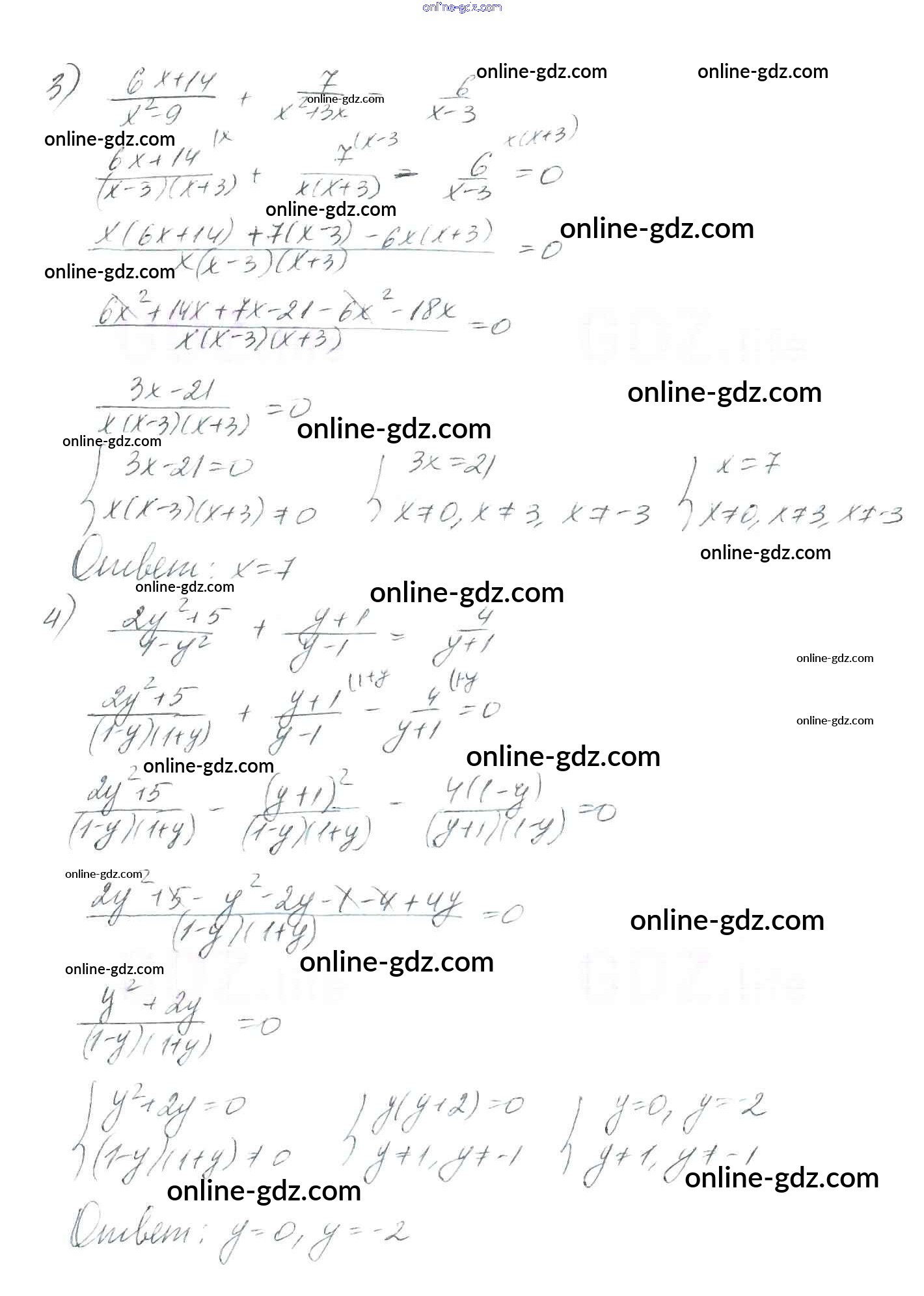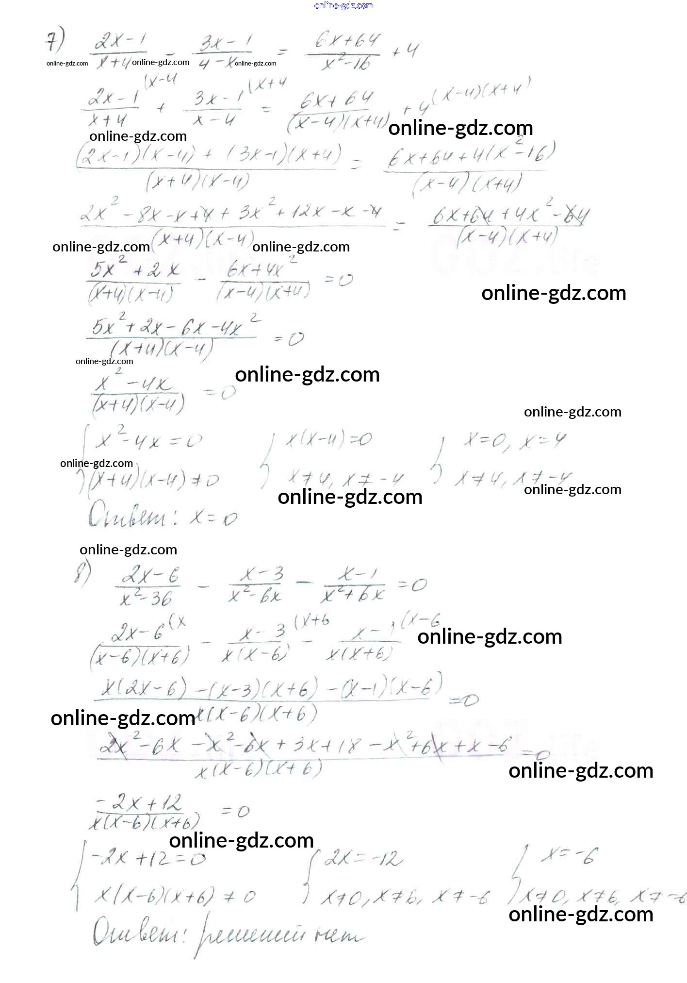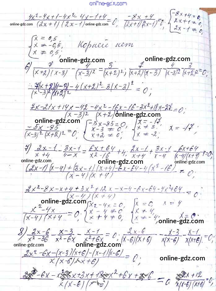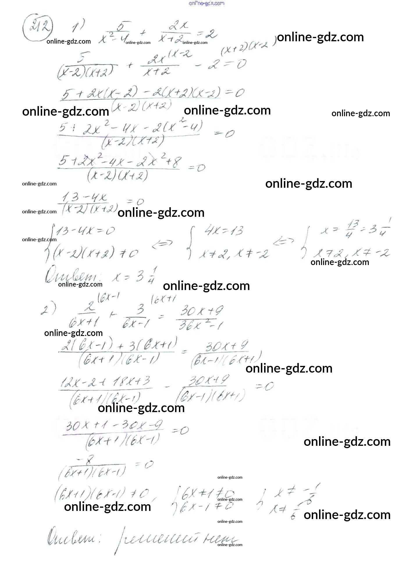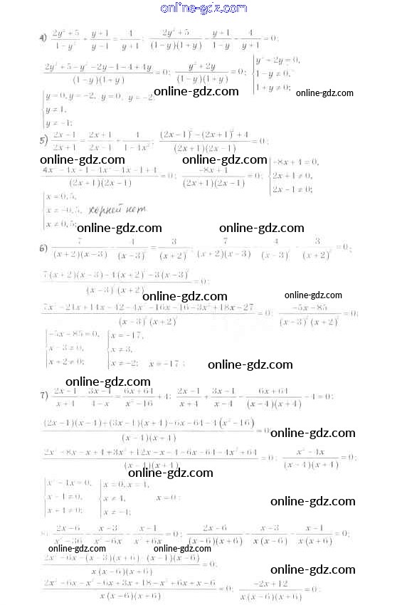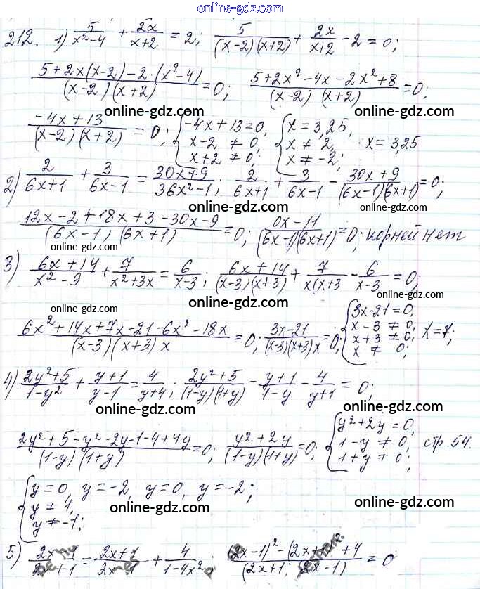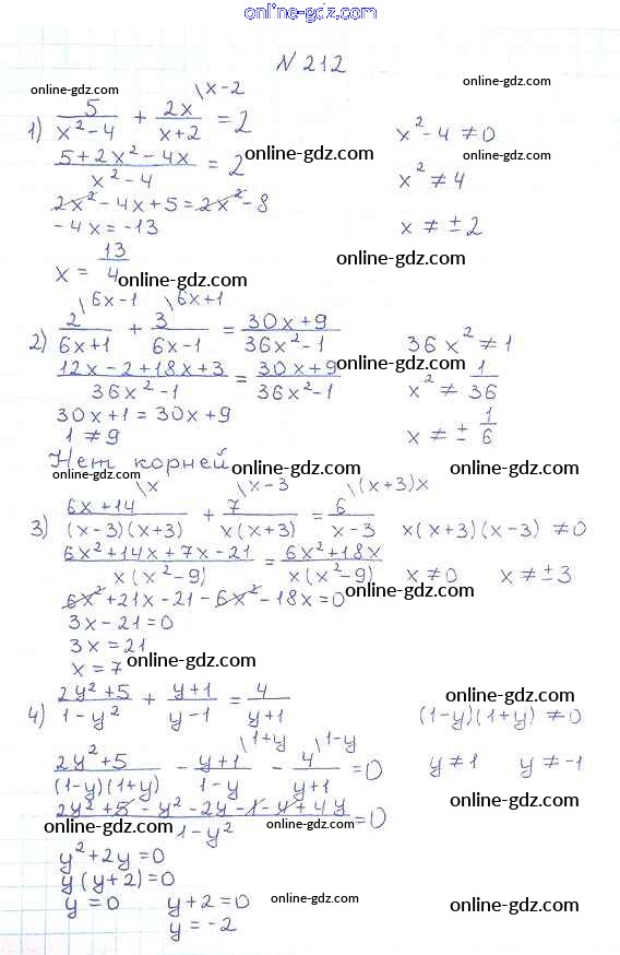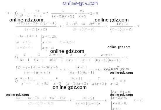 Готовые домашние задания по Алгебре за 8 класс Учебник Мерзляк, Полонский Алгоритм успеха 2016 - §7. Равносильные уравнения. Рациональные уравнения Глава 1. Рациональные выражения 212