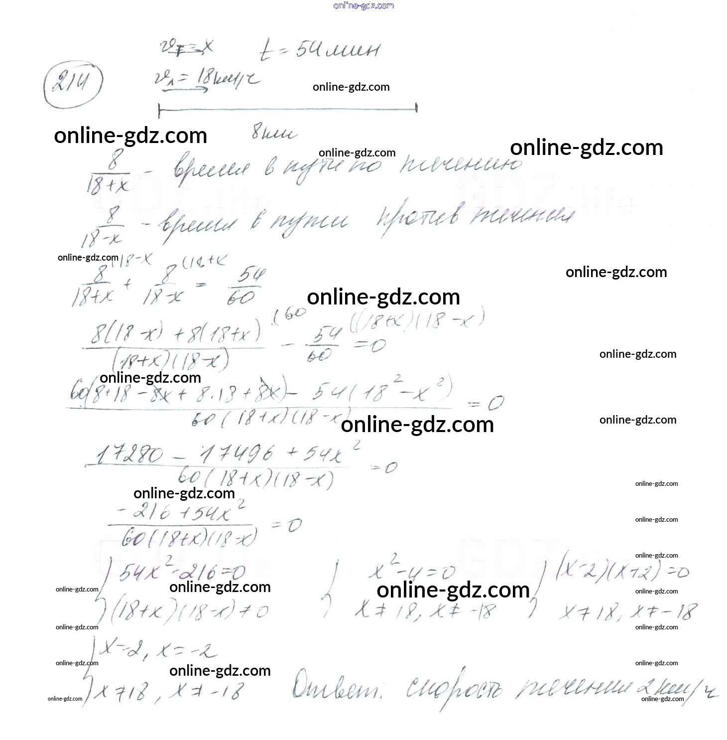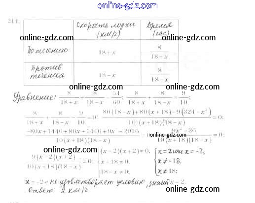 Готовые домашние задания по Алгебре за 8 класс Учебник Мерзляк, Полонский Алгоритм успеха 2016 - §7. Равносильные уравнения. Рациональные уравнения Глава 1. Рациональные выражения 214