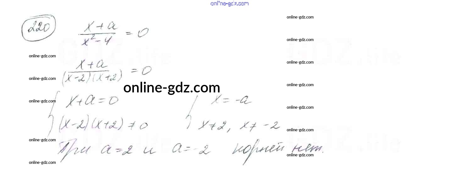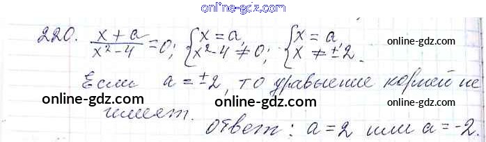 Готовые домашние задания по Алгебре за 8 класс Учебник Мерзляк, Полонский Алгоритм успеха 2016 - §7. Равносильные уравнения. Рациональные уравнения Глава 1. Рациональные выражения 220