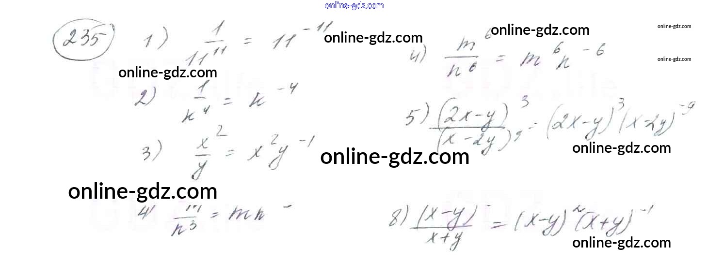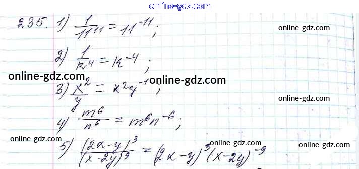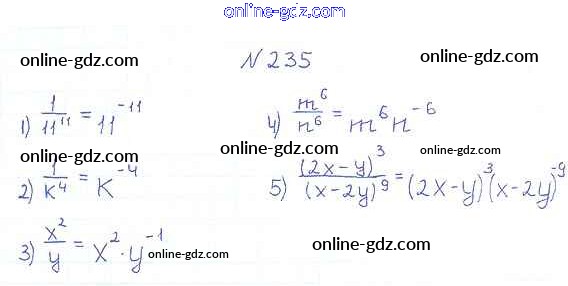 Готовые домашние задания по Алгебре за 8 класс Учебник Мерзляк, Полонский Алгоритм успеха 2016 - §8. Степень с целым отрицательным показателем Глава 1. Рациональные выражения 235