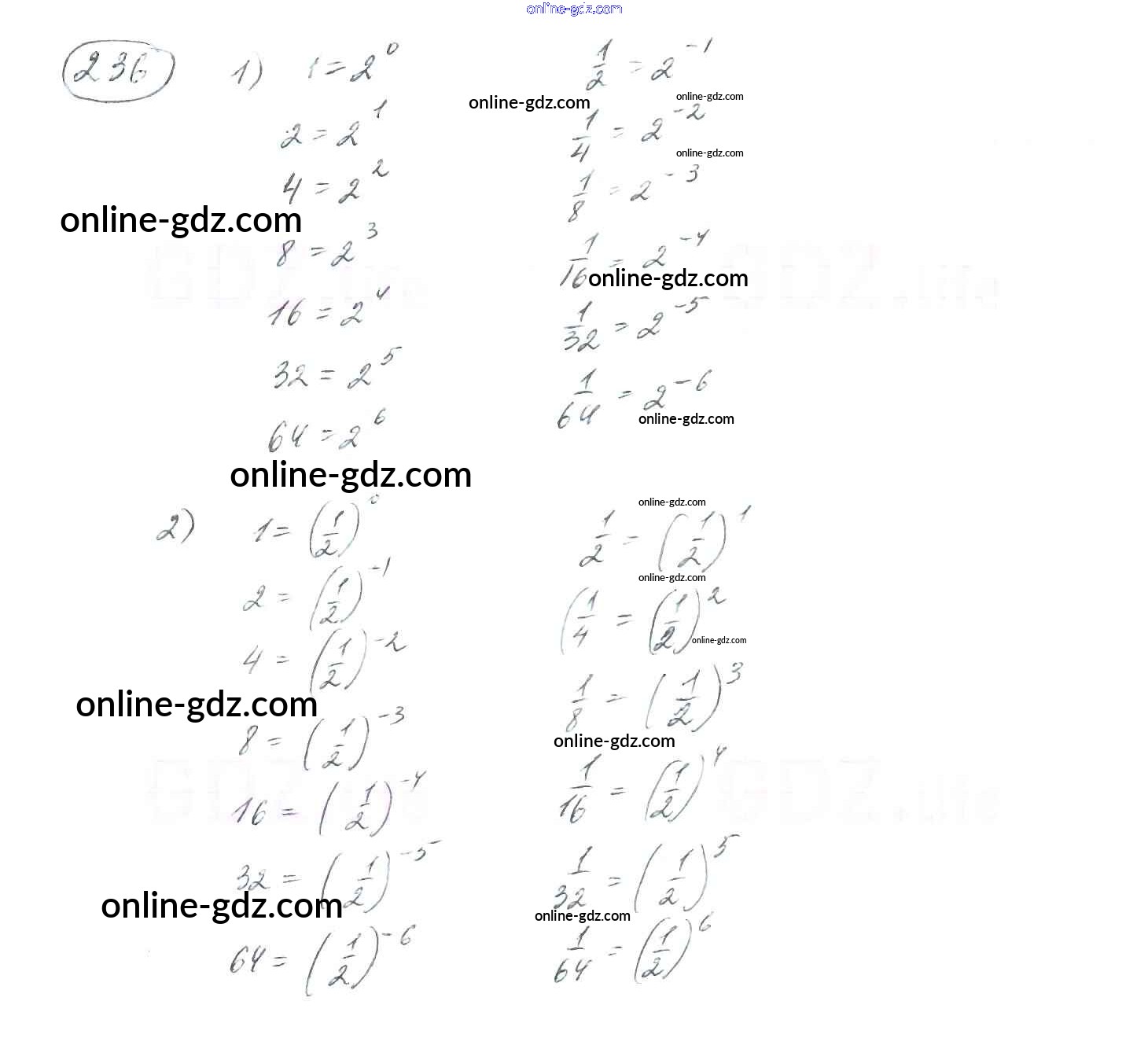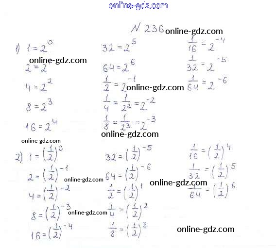 Готовые домашние задания по Алгебре за 8 класс Учебник Мерзляк, Полонский Алгоритм успеха 2016 - §8. Степень с целым отрицательным показателем Глава 1. Рациональные выражения 236