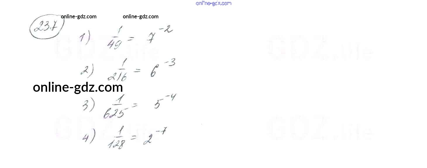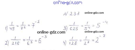 Готовые домашние задания по Алгебре за 8 класс Учебник Мерзляк, Полонский Алгоритм успеха 2016 - §8. Степень с целым отрицательным показателем Глава 1. Рациональные выражения 237