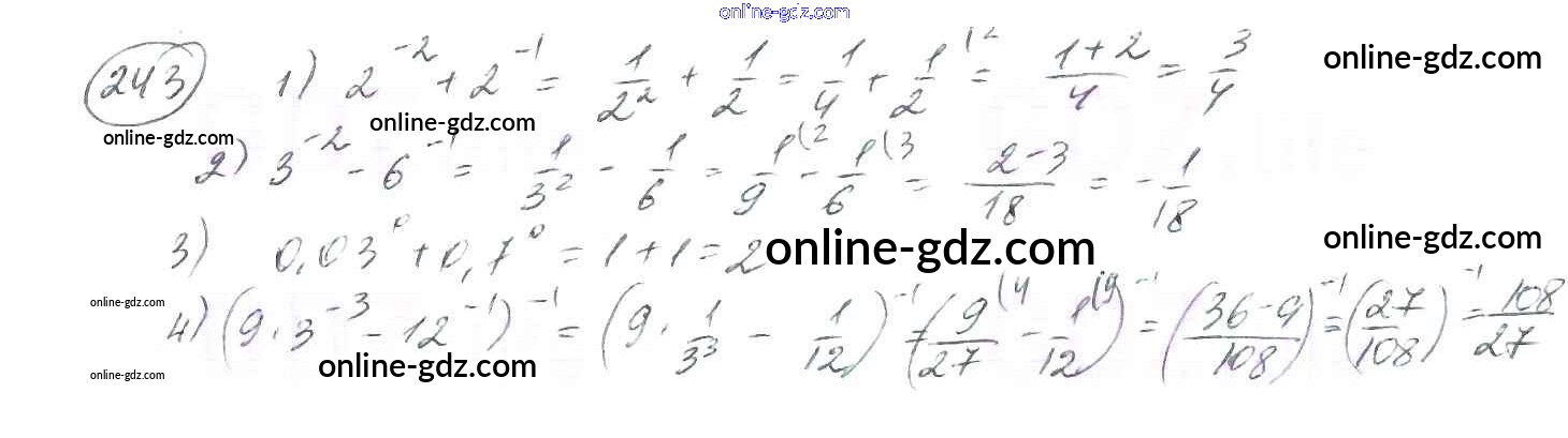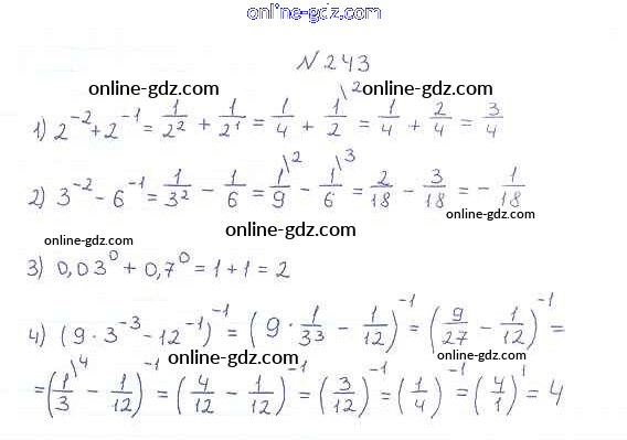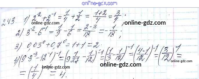Готовые домашние задания по Алгебре за 8 класс Учебник Мерзляк, Полонский Алгоритм успеха 2016 - §8. Степень с целым отрицательным показателем Глава 1. Рациональные выражения 243