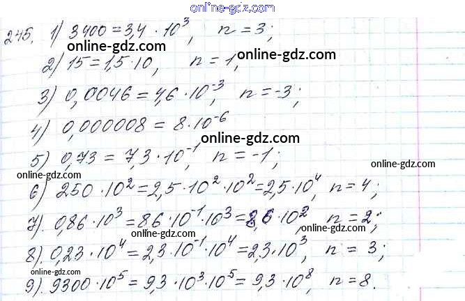 Готовые домашние задания по Алгебре за 8 класс Учебник Мерзляк, Полонский Алгоритм успеха 2016 - §8. Степень с целым отрицательным показателем Глава 1. Рациональные выражения 245
