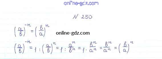 Готовые домашние задания по Алгебре за 8 класс Учебник Мерзляк, Полонский Алгоритм успеха 2016 - §8. Степень с целым отрицательным показателем Глава 1. Рациональные выражения 250