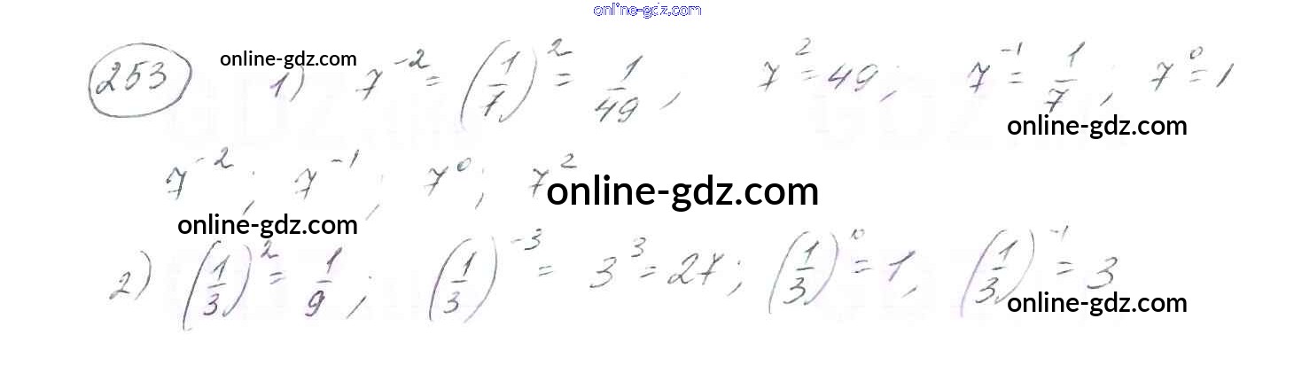 Готовые домашние задания по Алгебре за 8 класс Учебник Мерзляк, Полонский Алгоритм успеха 2016 - §8. Степень с целым отрицательным показателем Глава 1. Рациональные выражения 253