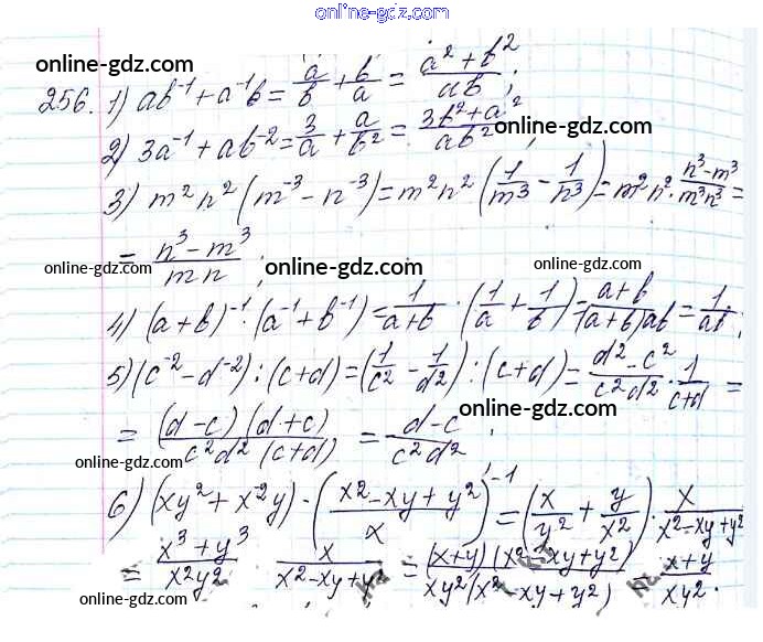 Готовые домашние задания по Алгебре за 8 класс Учебник Мерзляк, Полонский Алгоритм успеха 2016 - §8. Степень с целым отрицательным показателем Глава 1. Рациональные выражения 256