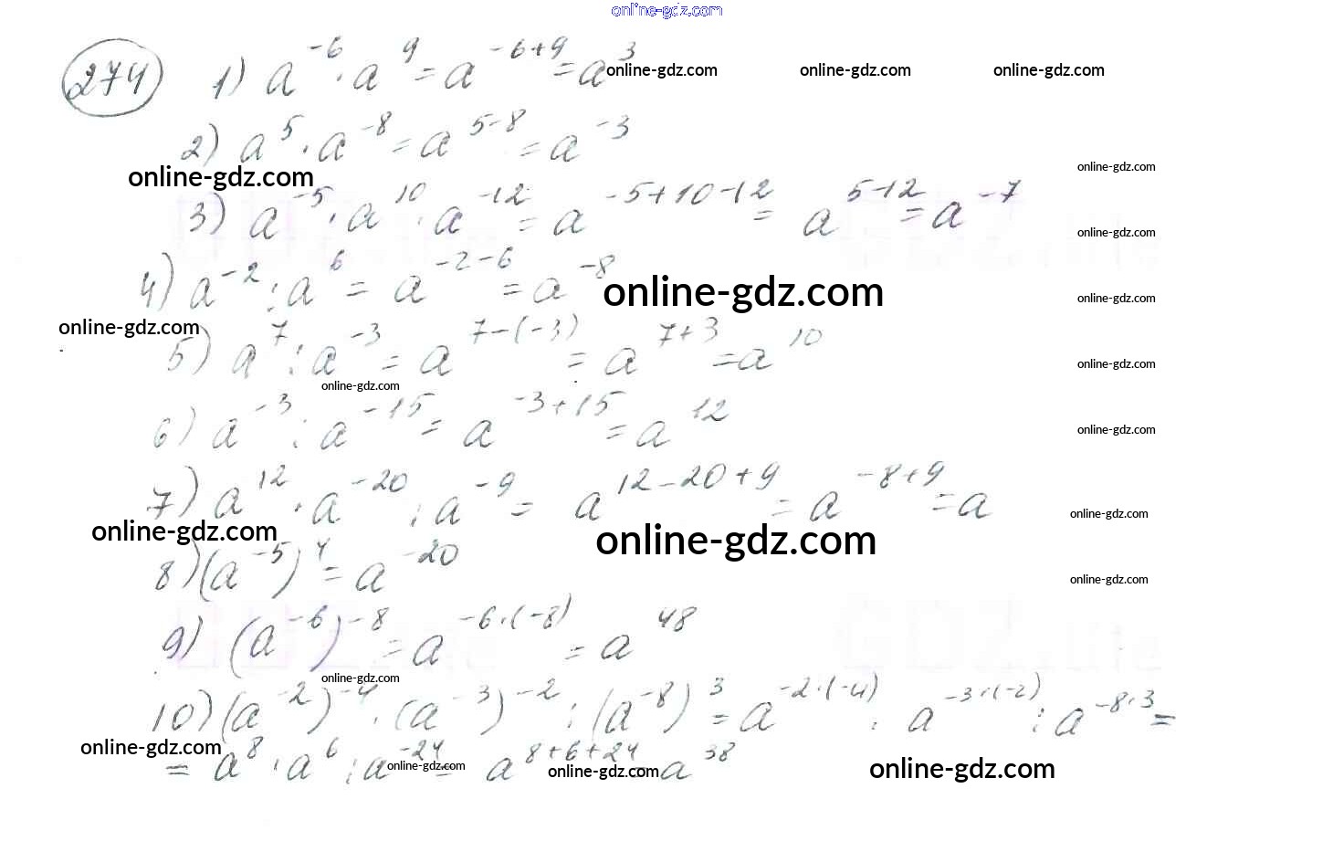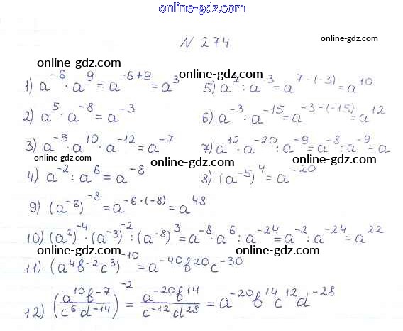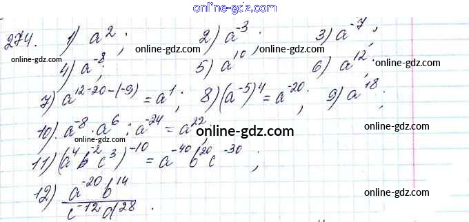 Готовые домашние задания по Алгебре за 8 класс Учебник Мерзляк, Полонский Алгоритм успеха 2016 - §9. Свойства степени с целым показателем Глава 1. Рациональные выражения 274