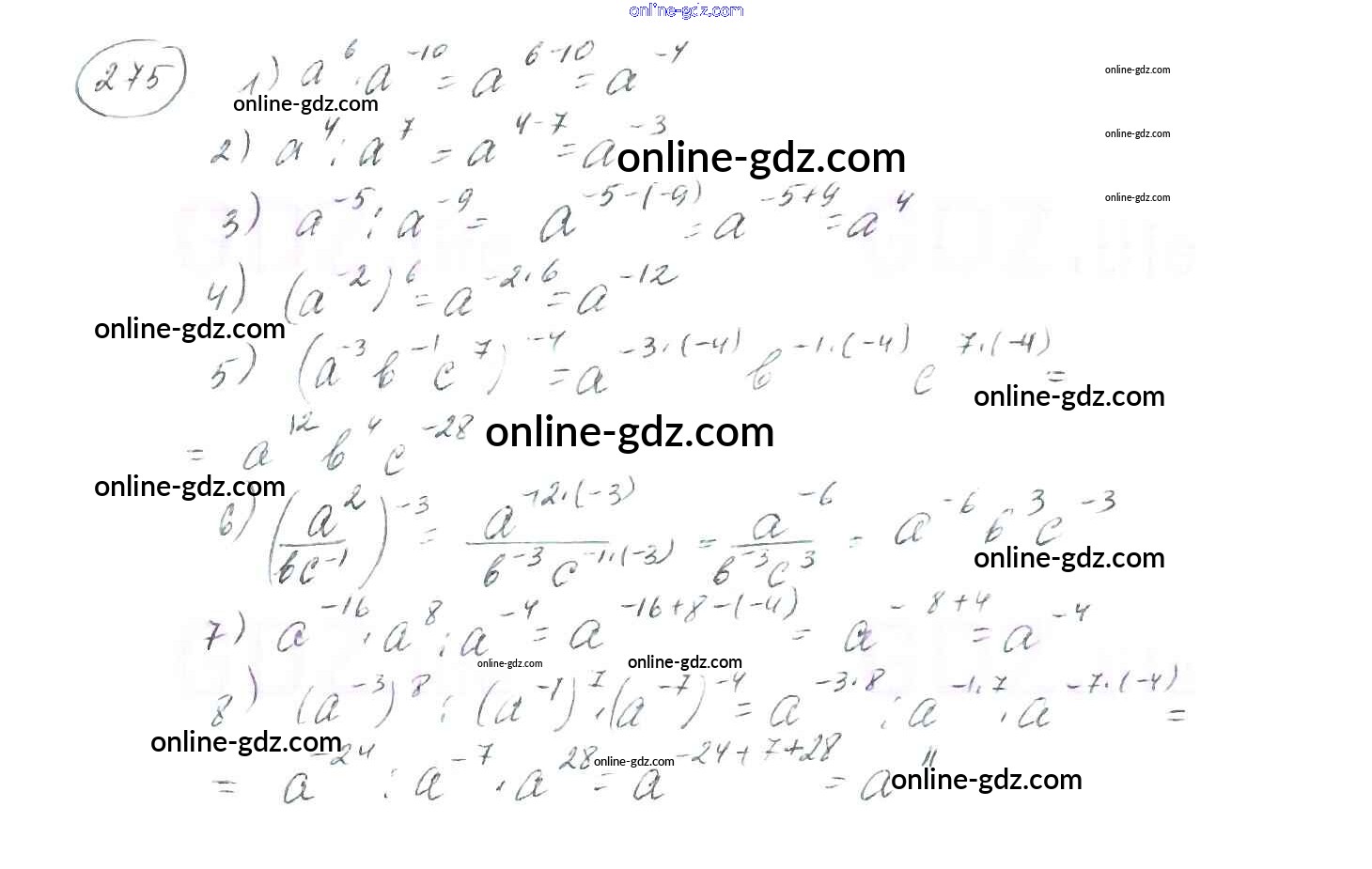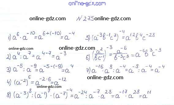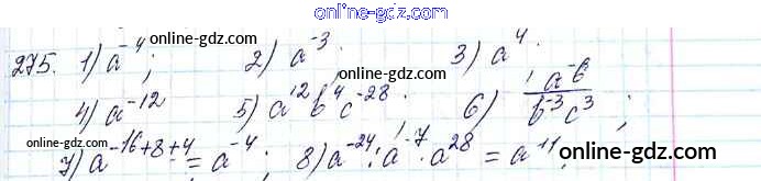 Готовые домашние задания по Алгебре за 8 класс Учебник Мерзляк, Полонский Алгоритм успеха 2016 - §9. Свойства степени с целым показателем Глава 1. Рациональные выражения 275