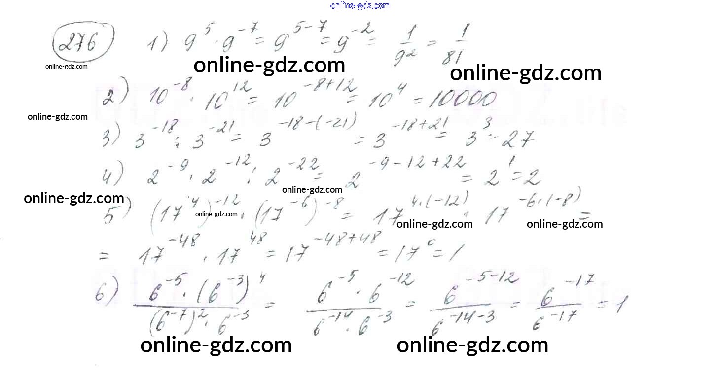 Готовые домашние задания по Алгебре за 8 класс Учебник Мерзляк, Полонский Алгоритм успеха 2016 - §9. Свойства степени с целым показателем Глава 1. Рациональные выражения 276
