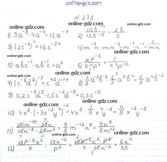 Готовые домашние задания по Алгебре за 8 класс Учебник Мерзляк, Полонский Алгоритм успеха 2016 - §9. Свойства степени с целым показателем Глава 1. Рациональные выражения 278