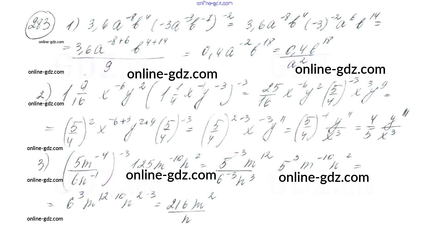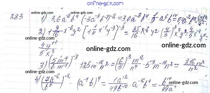 Готовые домашние задания по Алгебре за 8 класс Учебник Мерзляк, Полонский Алгоритм успеха 2016 - §9. Свойства степени с целым показателем Глава 1. Рациональные выражения 283