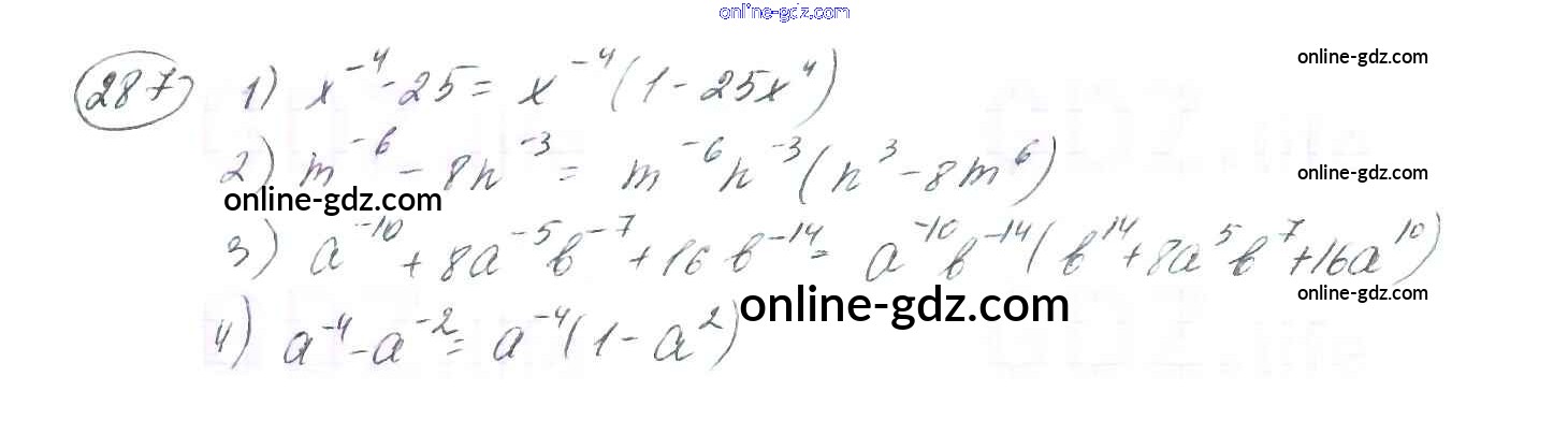 Готовые домашние задания по Алгебре за 8 класс Учебник Мерзляк, Полонский Алгоритм успеха 2016 - §9. Свойства степени с целым показателем Глава 1. Рациональные выражения 287