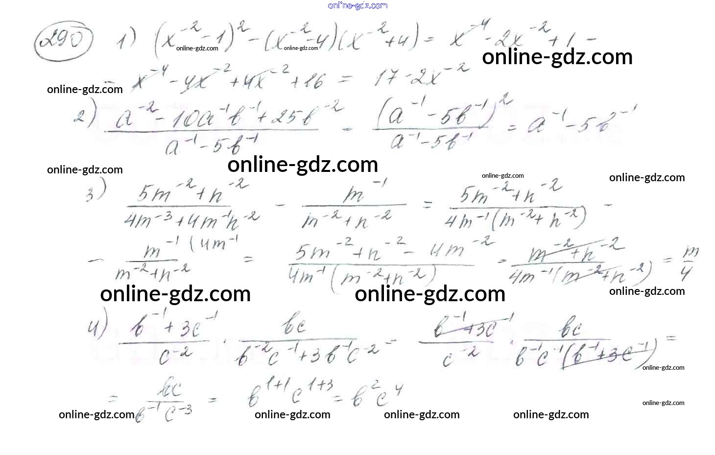 Готовые домашние задания по Алгебре за 8 класс Учебник Мерзляк, Полонский Алгоритм успеха 2016 - §9. Свойства степени с целым показателем Глава 1. Рациональные выражения 290