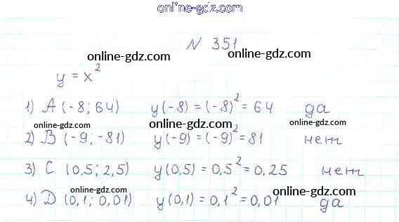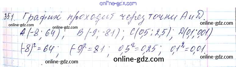 Готовые домашние задания по Алгебре за 8 класс Учебник Мерзляк, Полонский Алгоритм успеха 2016 - §11. Функция y= x² Глава 2. Квадратные корни. Действительные числа 351