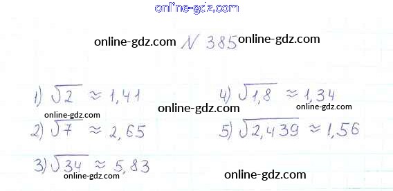 Готовые домашние задания по Алгебре за 8 класс Учебник Мерзляк, Полонский Алгоритм успеха 2016 - §12. Квадратные корни. Арифметический квадратный корень Глава 2. Квадратные корни. Действительные числа 385
