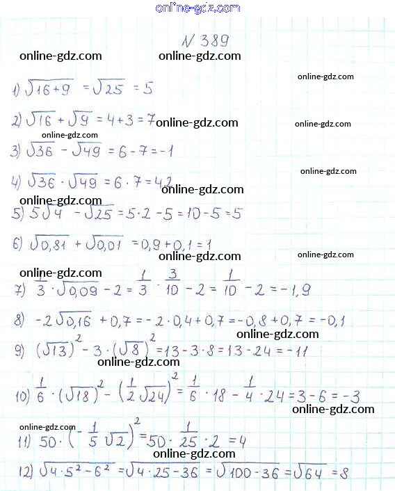 Готовые домашние задания по Алгебре за 8 класс Учебник Мерзляк, Полонский Алгоритм успеха 2016 - §12. Квадратные корни. Арифметический квадратный корень Глава 2. Квадратные корни. Действительные числа 389