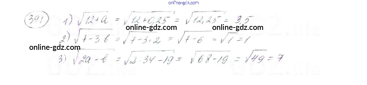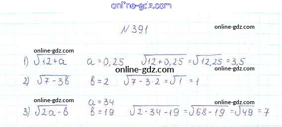 Готовые домашние задания по Алгебре за 8 класс Учебник Мерзляк, Полонский Алгоритм успеха 2016 - §12. Квадратные корни. Арифметический квадратный корень Глава 2. Квадратные корни. Действительные числа 391