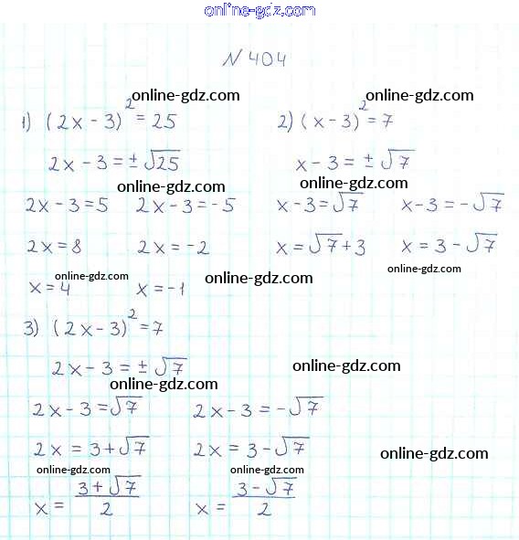Готовые домашние задания по Алгебре за 8 класс Учебник Мерзляк, Полонский Алгоритм успеха 2016 - §12. Квадратные корни. Арифметический квадратный корень Глава 2. Квадратные корни. Действительные числа 404