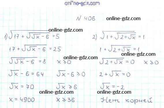 Готовые домашние задания по Алгебре за 8 класс Учебник Мерзляк, Полонский Алгоритм успеха 2016 - §12. Квадратные корни. Арифметический квадратный корень Глава 2. Квадратные корни. Действительные числа 406