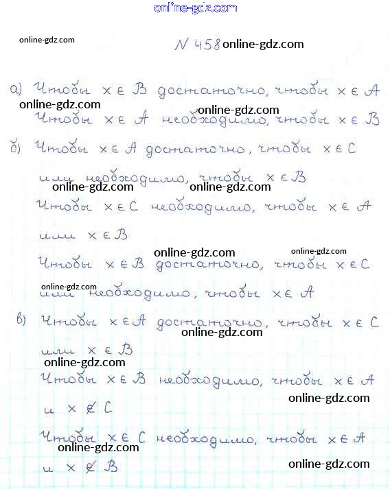 Готовые домашние задания по Алгебре за 8 класс Учебник Мерзляк, Полонский Алгоритм успеха 2016 - §14. Подмножество. Операции над множествами Глава 2. Квадратные корни. Действительные числа 458